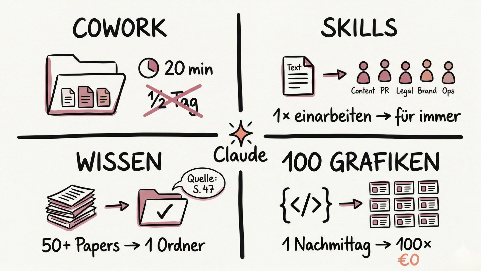 Das ist kein Zukunftsszenario. Das ist Claude — richtig eingerichtet. Wir haben es diese Woche in vier Kundenprojekten erlebt.
