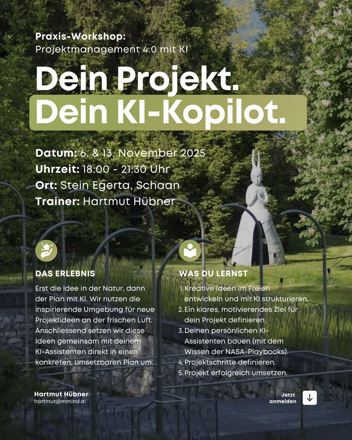 Wann und wo? Am 6. und 13. November 2025, jeweils von 18:00 – 21:30 Uhr im Seminarzentrum Stein Egerta in Schaan. Für den günstigen Preis von 195 CHF gibt es viel Praxiswissen und direkten Nutzwert.